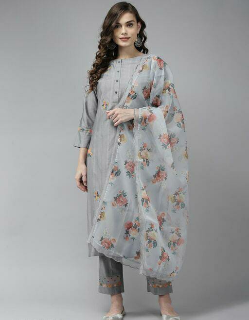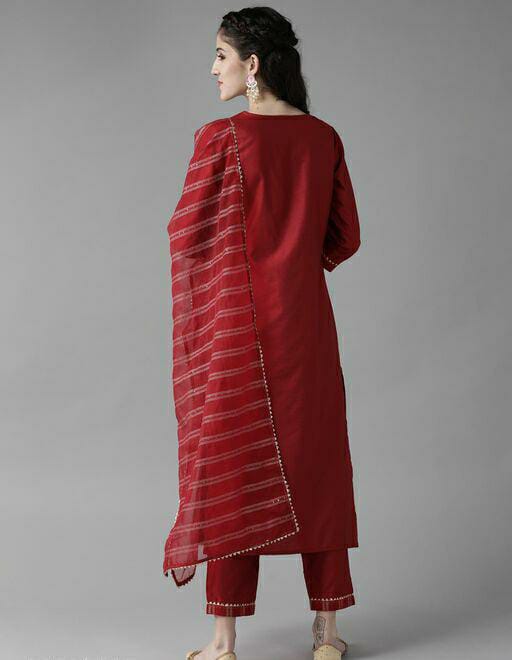 Solid Straight Kurta Trouser With Dupatta Sets