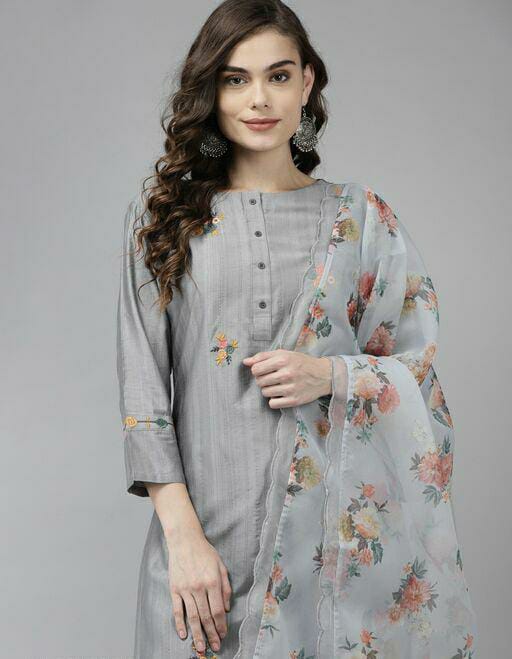 Embroidered Straight Kurta Trouser With Dupatta Set