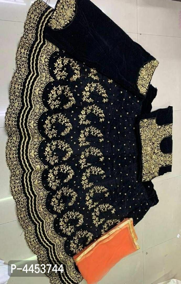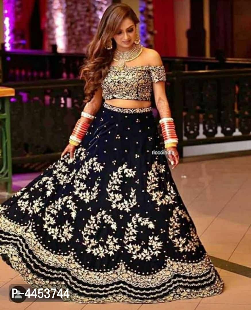 Latest Attractive Velvet Embroidered Semi Stitched Lehenga Choli