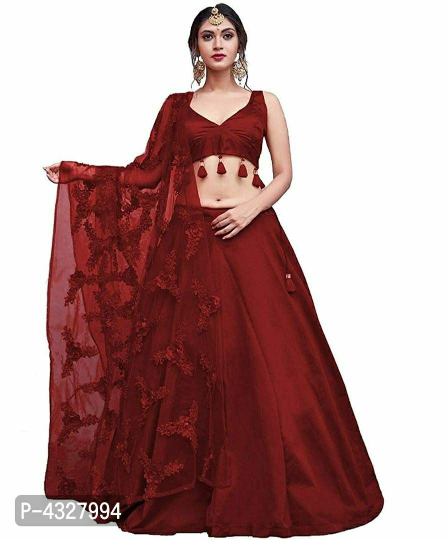 Ramcrupa Creation Women's Wine color taffeta silk semi-stitched lehe..