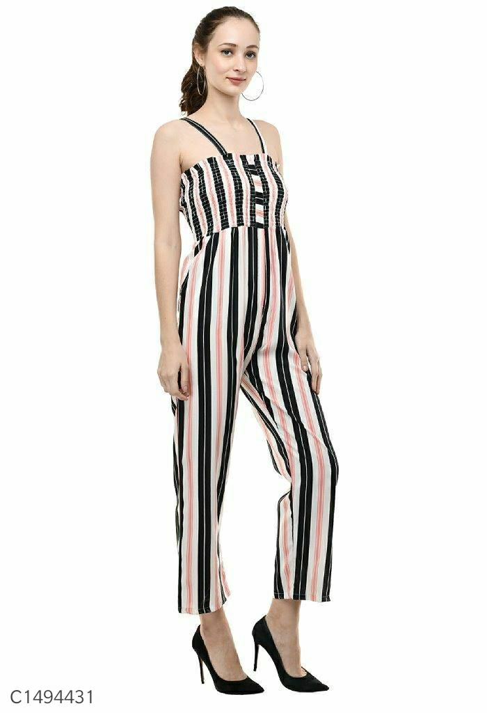 Stylish Cotton With Rayon Blend Pink Jumpsuit For Women