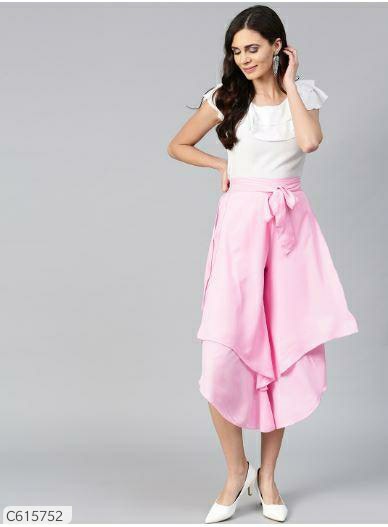 Bitterlime Women Crepe Layered Solid Top & Culottes Set