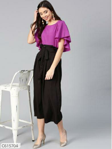 Bitterlime Women Fashion Layered Top & Culottes Set