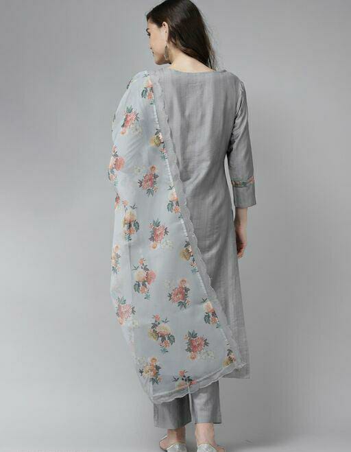Embroidered Straight Kurta Trouser With Dupatta Set
