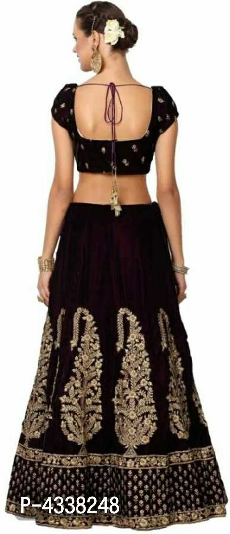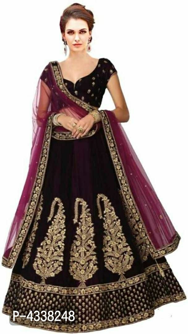 Ramcrupa Creation Women's Wine color taffeta silk semi-stitched lehenga choli(Free Size)