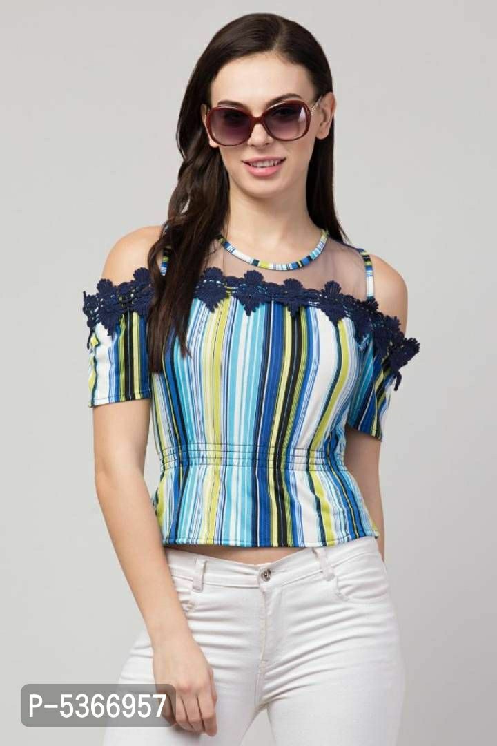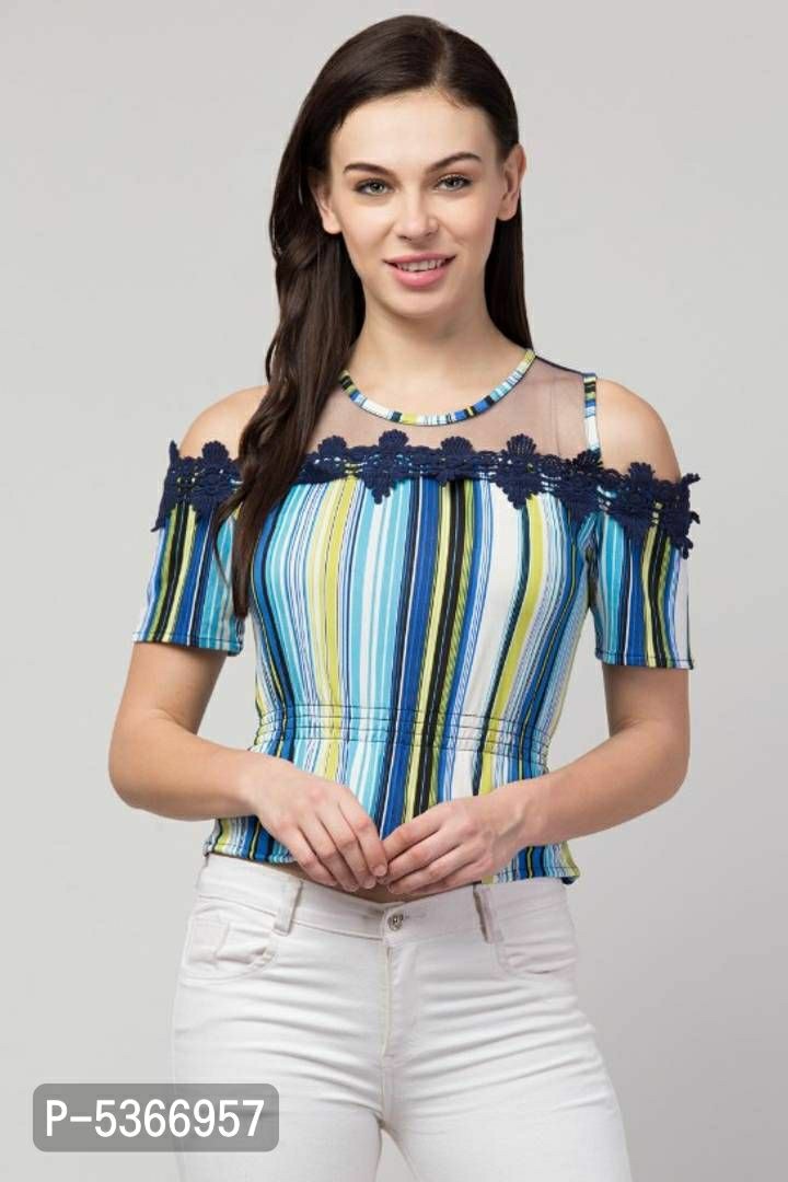 Tops Crop Cold Shoulder Lace Design stripe MultiColor