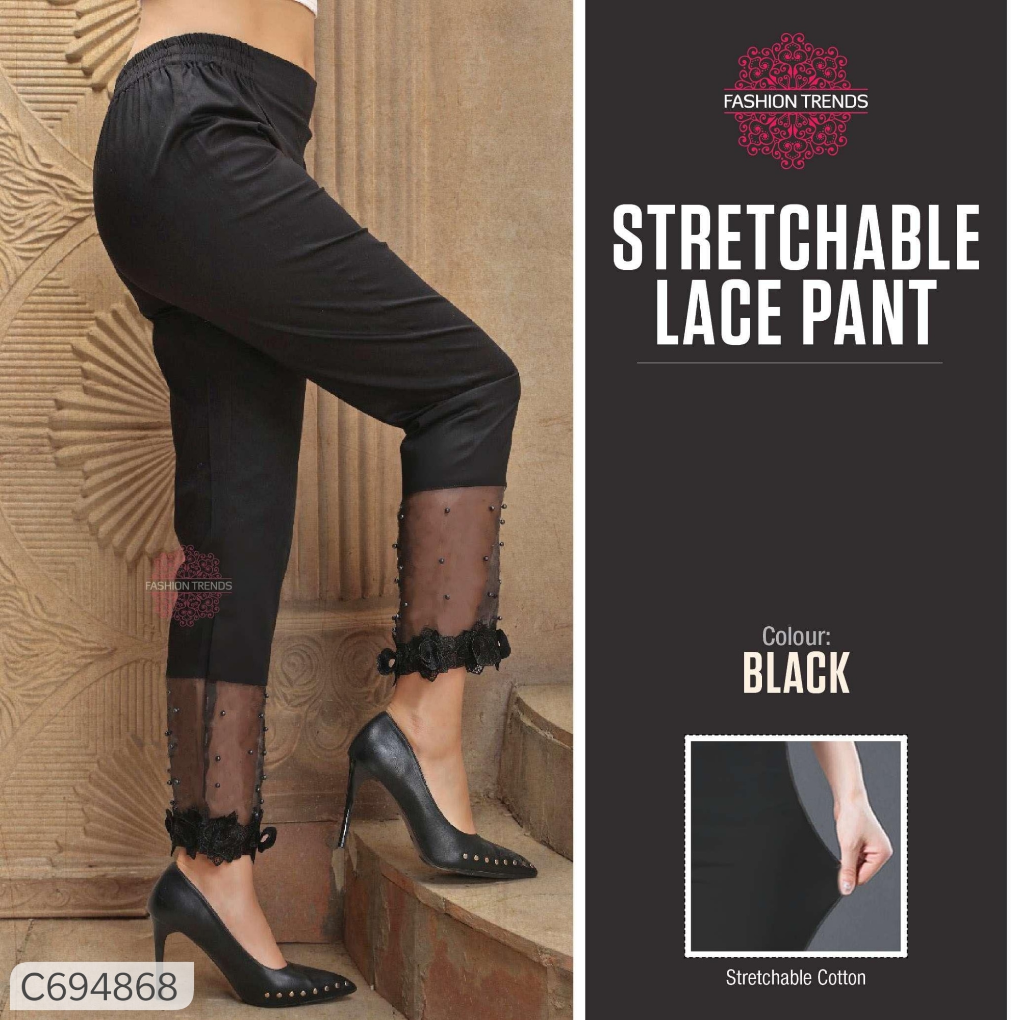 Women's Rayon Solid Lace With Pearl Beads Pant