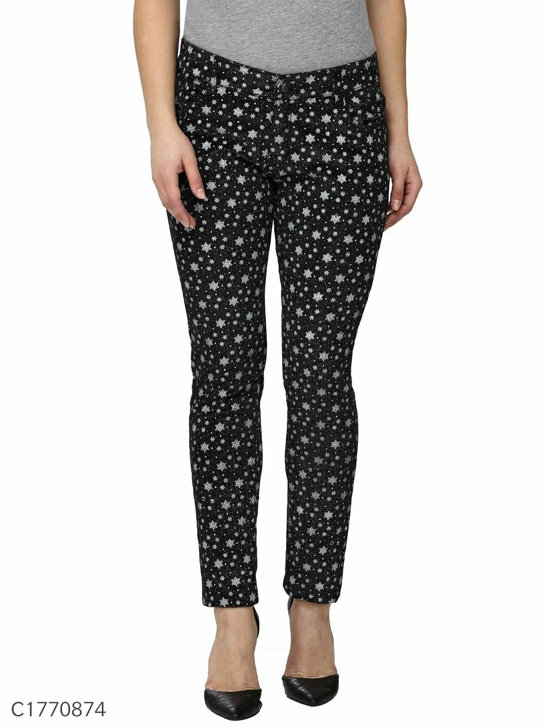 Women's Velvet Slub Printed Jeans